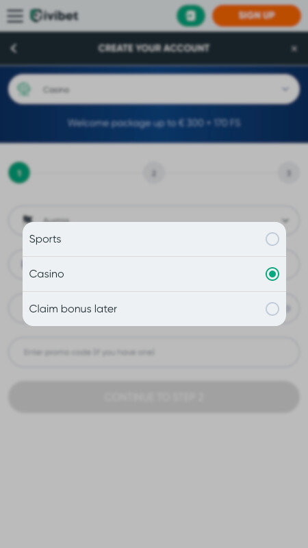 In addition, you can only claim one welcome bonus. When you open up the registration form, you’ll see two offer options – one for Casino and one for the Sportsbook. Tick the Casino box before you fill out the form.