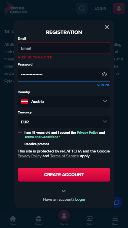 If you want to make an account at Trips Casino, just follow these simple steps: