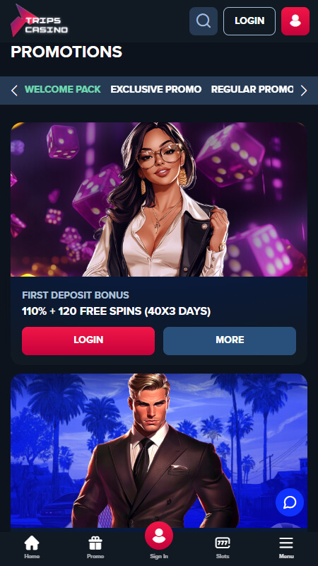 The website of Trips Casino stands out due to its brilliant design, straightforward layout, and steadfast dedication to its innovative concept. The casino’s intuitive design ensures that players of all experience levels will have a great time there. The ease with which a complete newbie may register, deposit funds, explore the many casino sections, and initiate a withdrawal is mind-boggling.