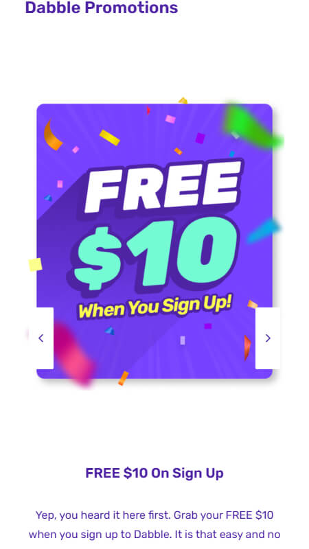 Being still so new to the betting market, Dabble has to unleash more of its promotional features to the public. As of now, it has a handful of good bonuses that you can only see once you are logged into your account.