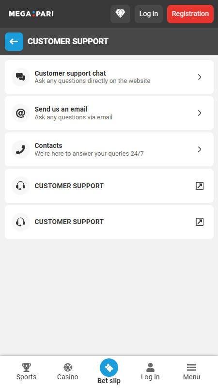 Despite the lack of a dedicated mobile app, Megapari’s website is mobile-friendly in every way. It ensures a seamless gambling experience from any device. Simply use your web browser to visit the website to start playing. The mobile website has a clean design and is almost identical to the desktop version, with a few pieces switched around to make better use of the screen space.
