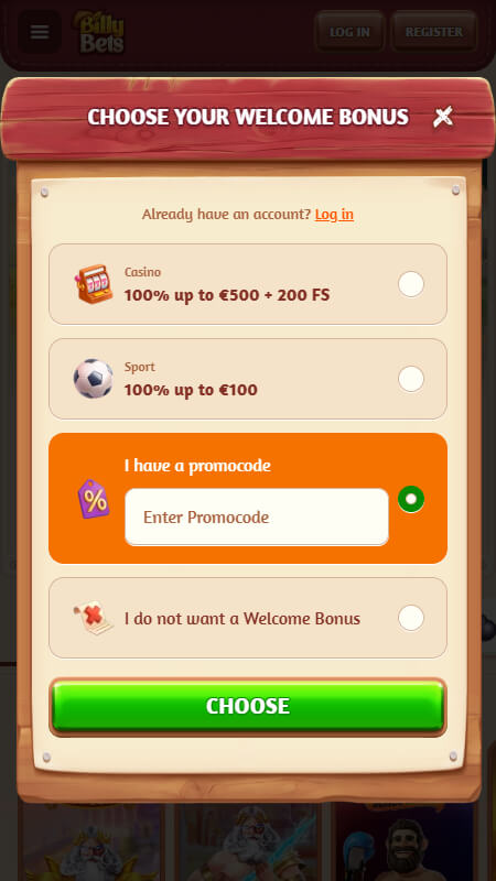 Choose the bonus. As you’re here for the sports betting section, it’s best to pick the sports welcome promo.