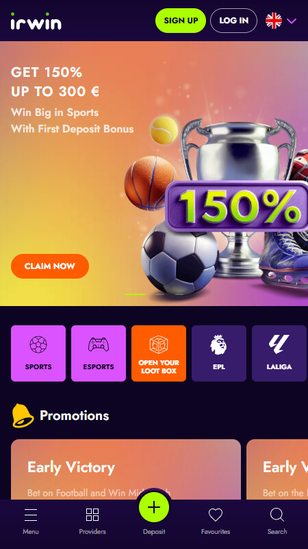 Those who don’t want to install the Irwin app or can’t do so can easily use the optimized mobile platform. Both options feature the same number of sports and games, functions, and payment methods, so punters can comfortably use any of them to enjoy betting on various championships and competitions.