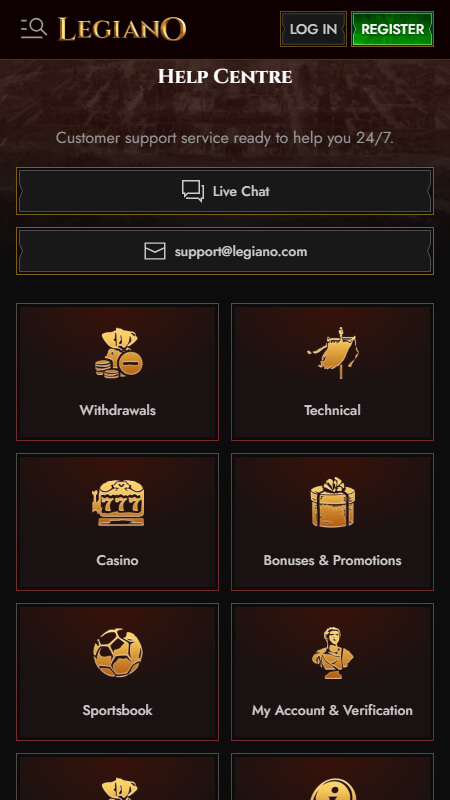 Legiano has multiple customer support channels, such as 24/7 live chat. You can also email them to get your issue sorted.