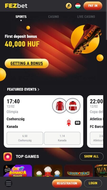 Sports bettors can enjoy a 100% deposit bonus of up to 40,000 HUF. Qualify for this by making a deposit of at least 7,640 HUF. To be able to withdraw the winnings, you need to wager the entire bonus amount five times on single sports bets with odds of at least 2.0 or accumulators, with each leg having at least 1.5 odds.