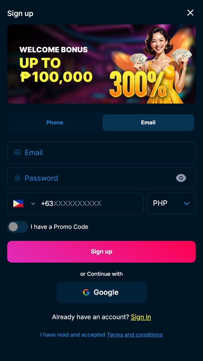 When you open the registration form, you’ll notice there are three ways in which you can sign up – By Phone, By Email or via your Google account. The steps below detail how to sign up via email.